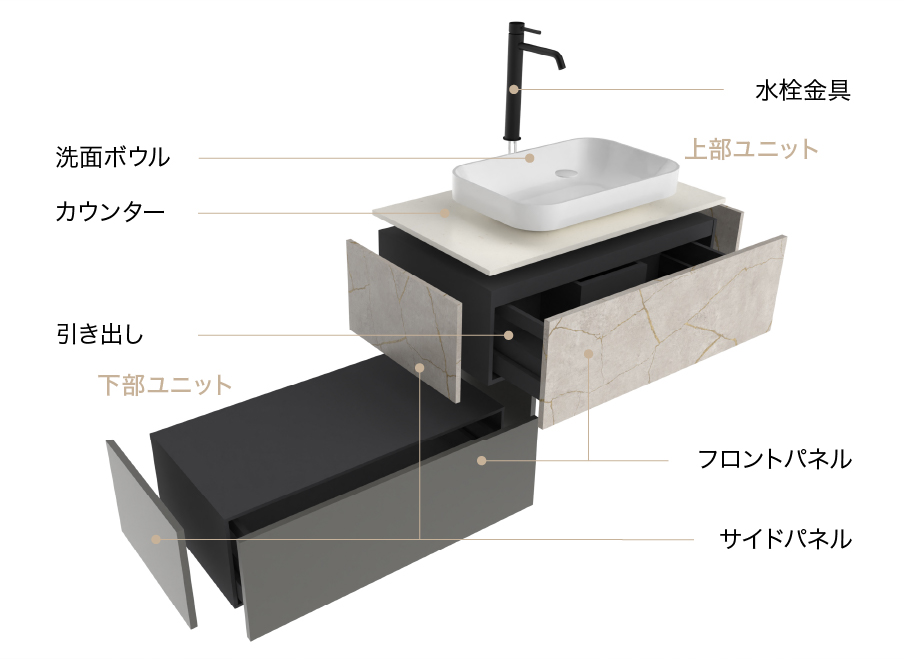 自由にデザインする洗面化粧台。