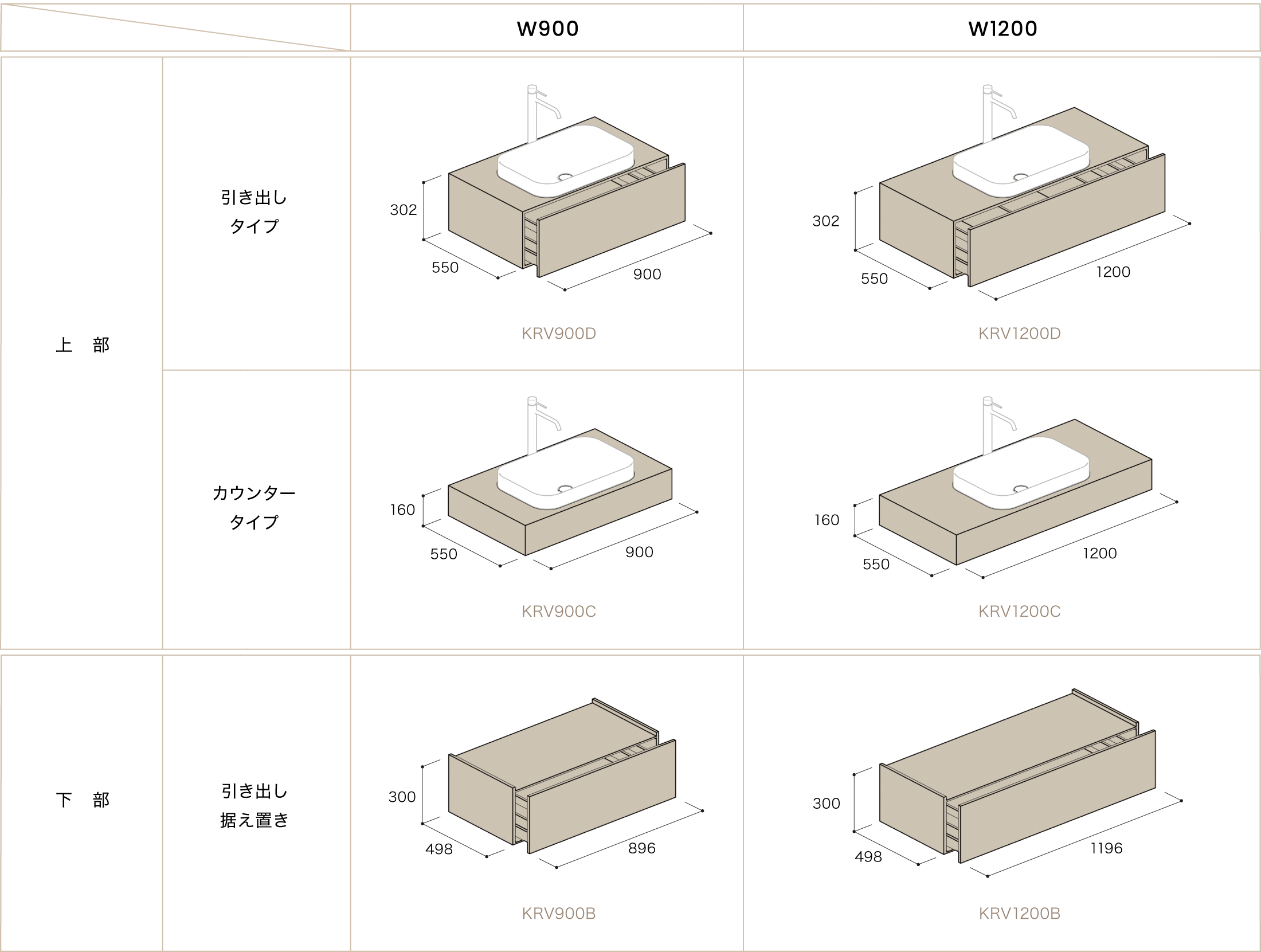 4種の洗面ボウルから