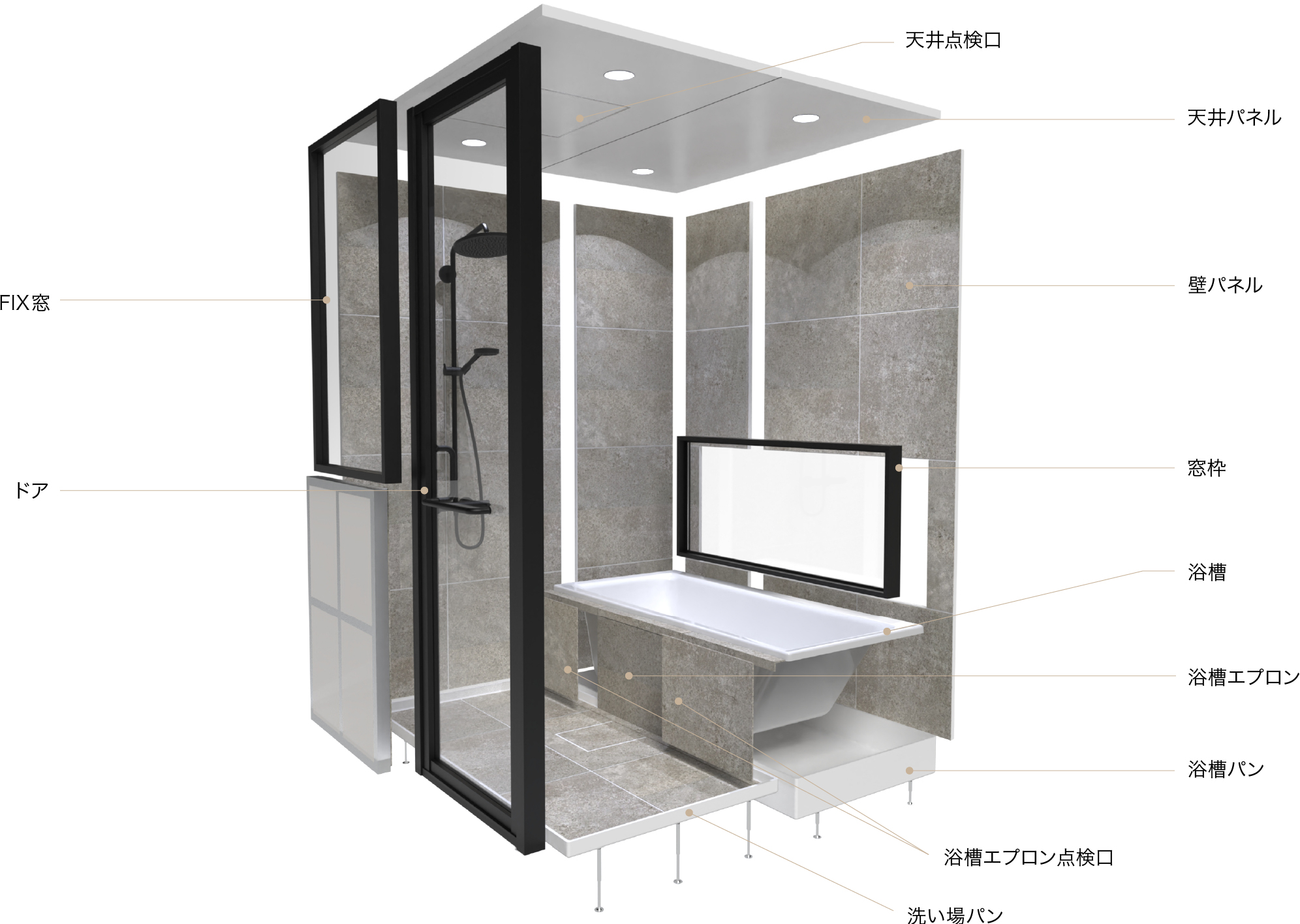 バスルーム本体の基本フォルムが決まります。